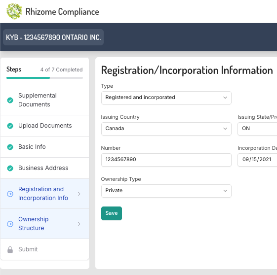 Gather and retain all required data for a compliant Know Your Customer or Know Your Business program.